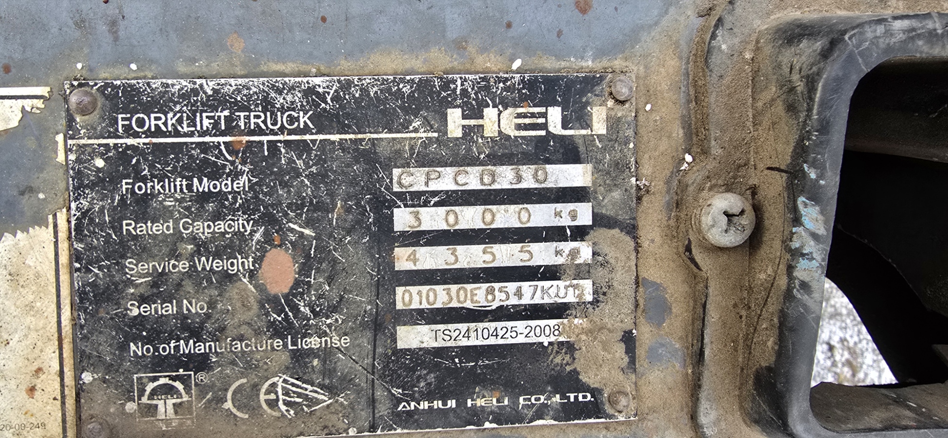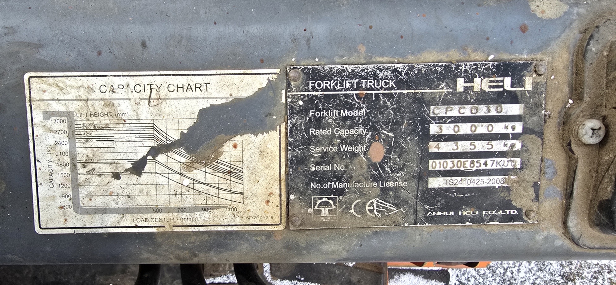 Tõstejõud 3000 kg, tõstekõrgus 3000 mm, kaheosaline standardmast, integreeritud kahvlite külgnihe, kahvlite pikkus 1500 mm, Kubota V2403 diiselmootor, automaatkast mehhaanilise lülitusega, täisrehvid, töötundide arv 5124 h, väljalaskeaasta 2008 a. heas korras masin