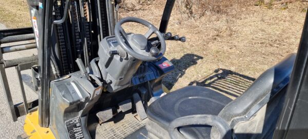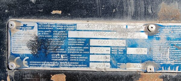 Tõstejõud 3000 kg, tõstekõrgus 5490 mm, kolmeosaline mast vabatõstega, masti kõrgus all asendis 2400 mm, kahvlite positsioneer koos külgnihkega Cascade 100G-FPS-B111 RO, kahvlite pikkus 1200 mm, täisrehvid, Nissan bensiinimootor, gaasiseade, automaatkast, töötundide arv 8195 h, väljalaskeaasta 2011 a., seerianumber ET13FL-02152, korralik, hea varustusega tõstuk